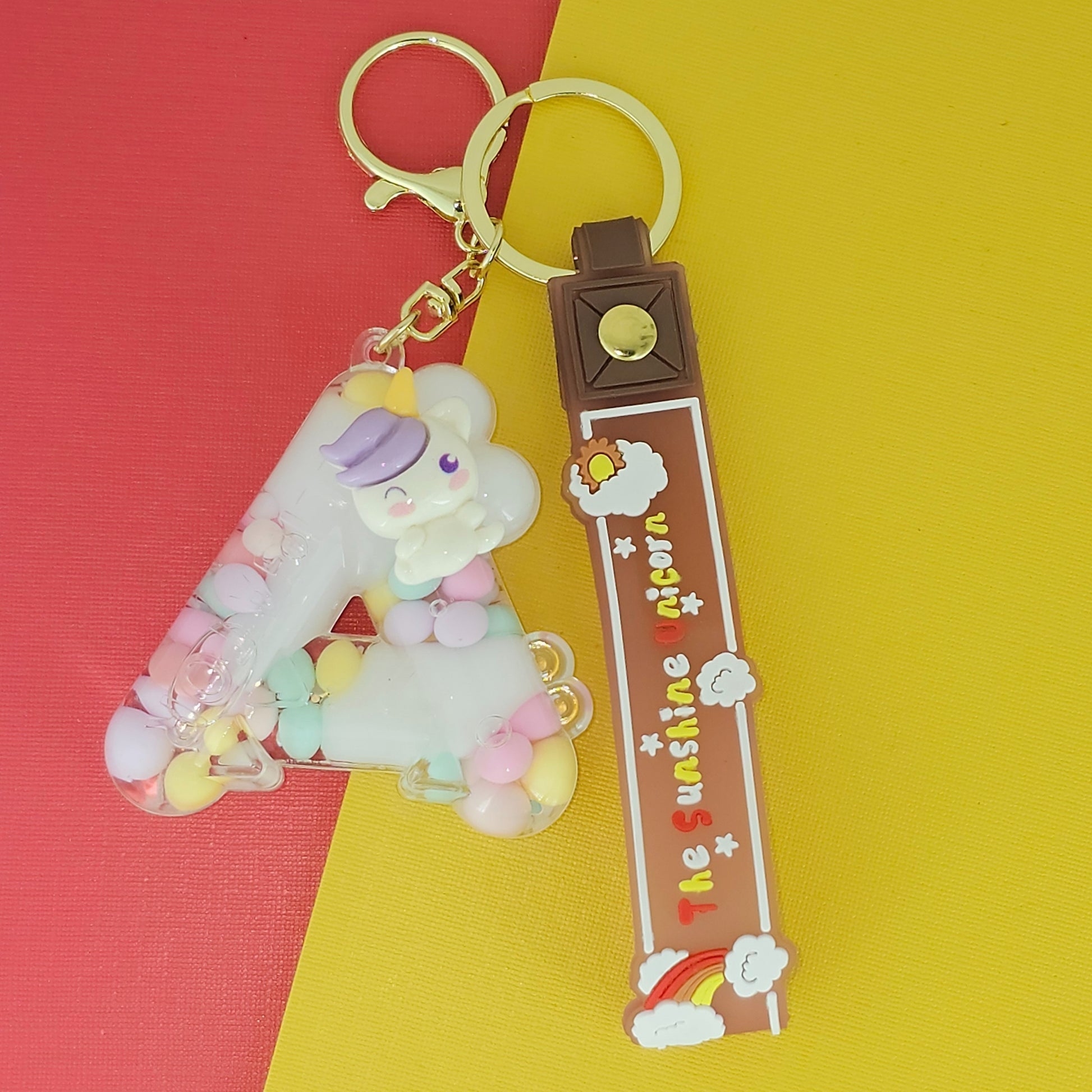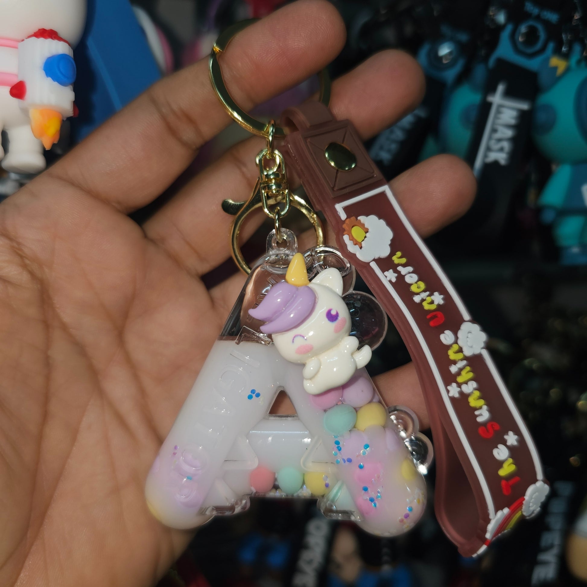 - DESIGN FEATURES: Adorable unicorn-themed alphabet letter keychain with water glitter effect, perfect for bags, car keys, and decorative purposes
