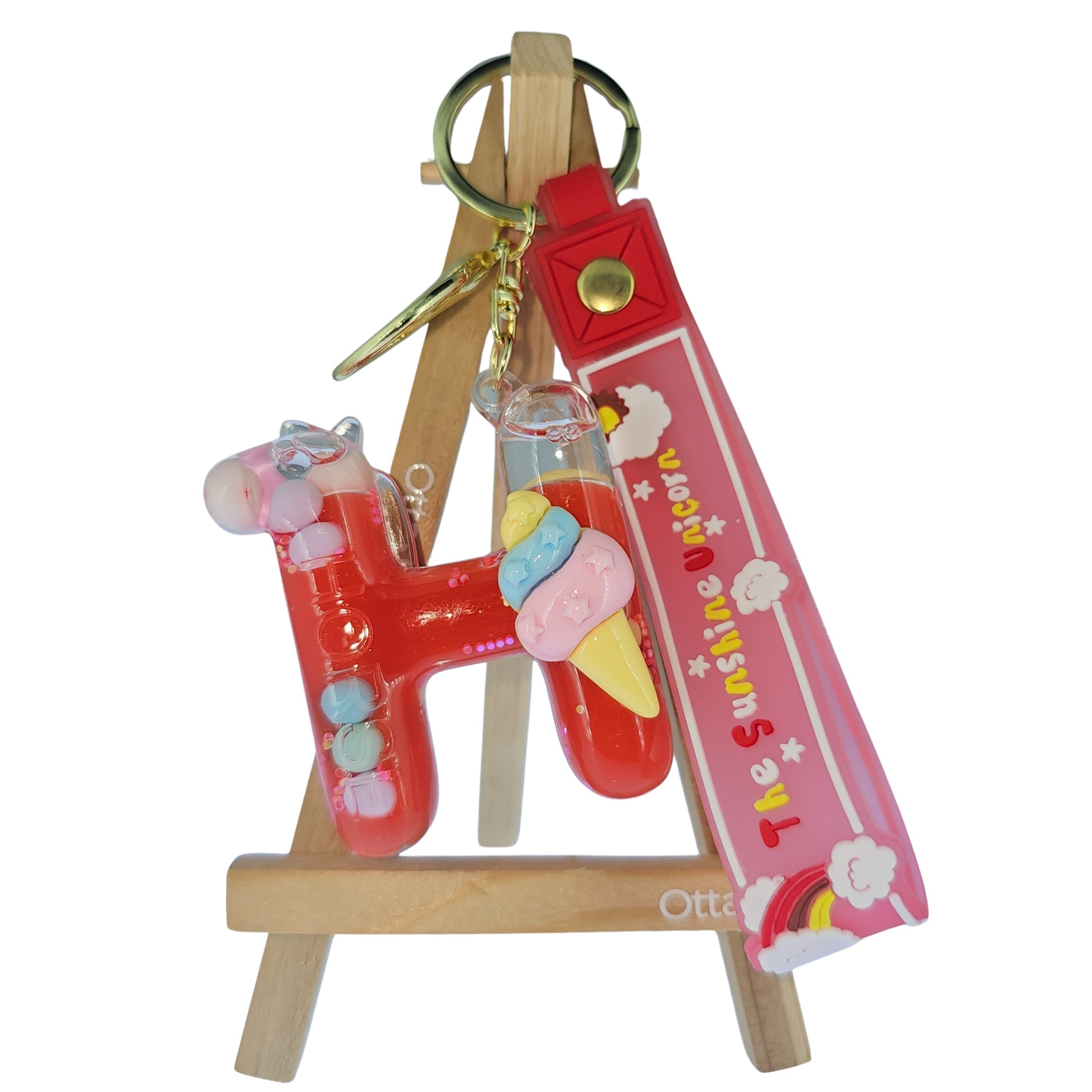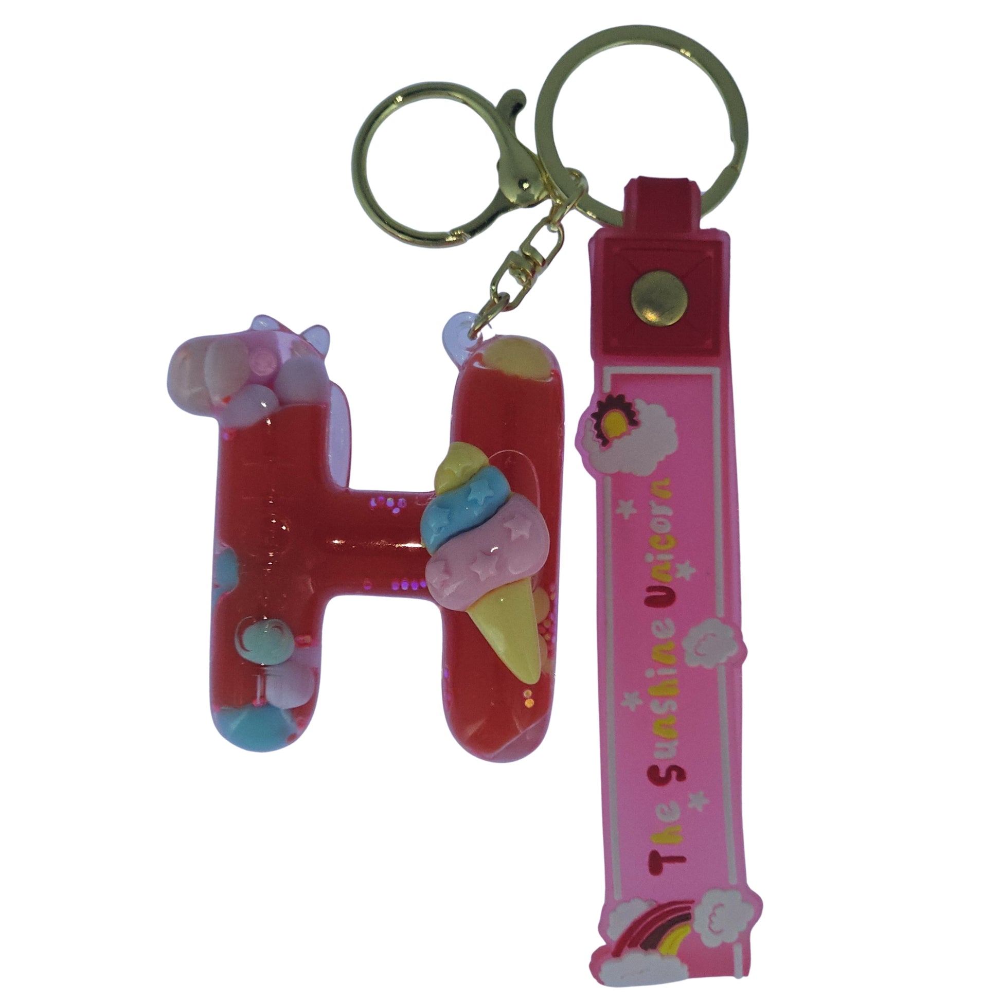 OTTAVO Unicorn Theme Alphabet Letter Glitter Keychain, PVC Water Globe Design, Decorative Bag Charm and Key Ring (Alphabet Letter H)