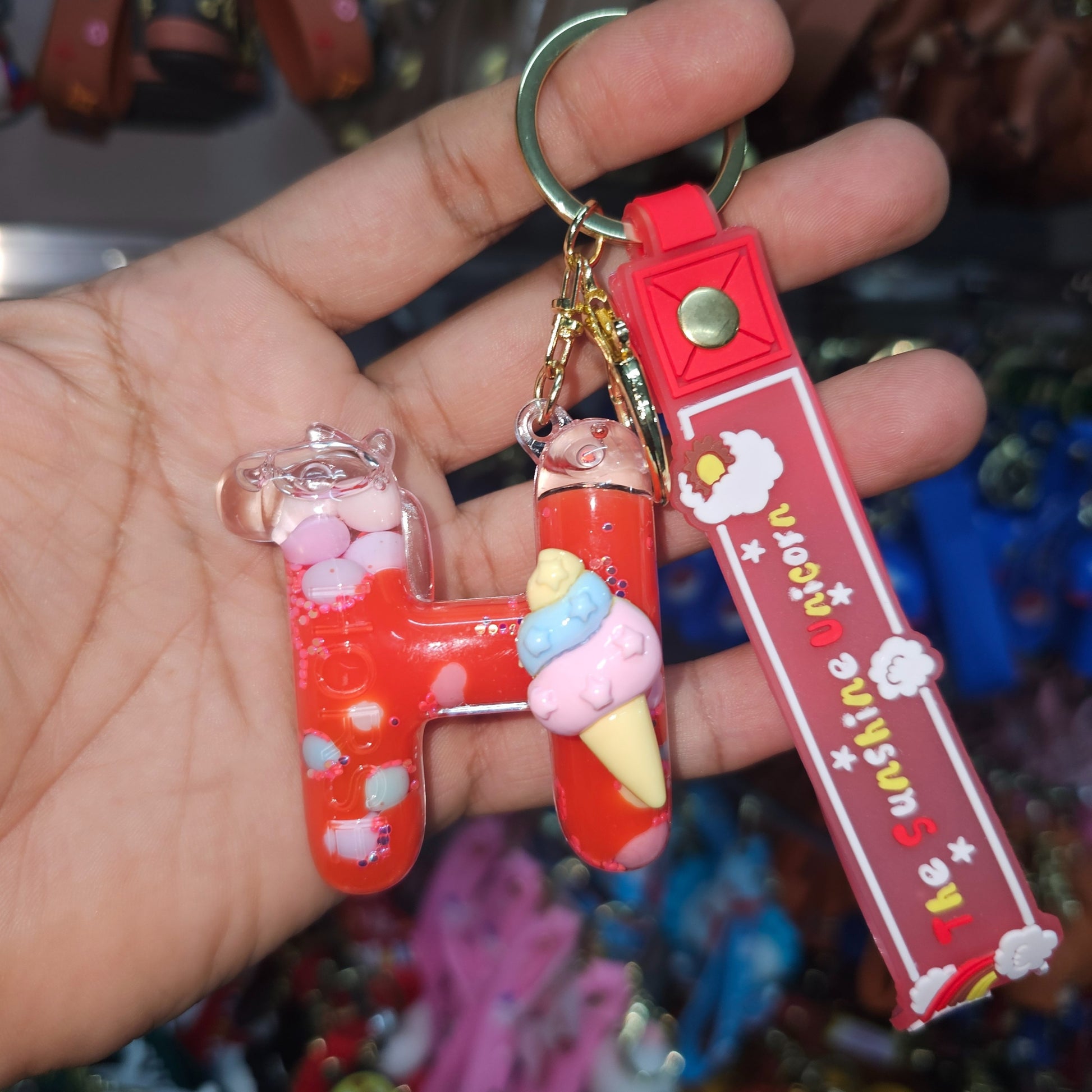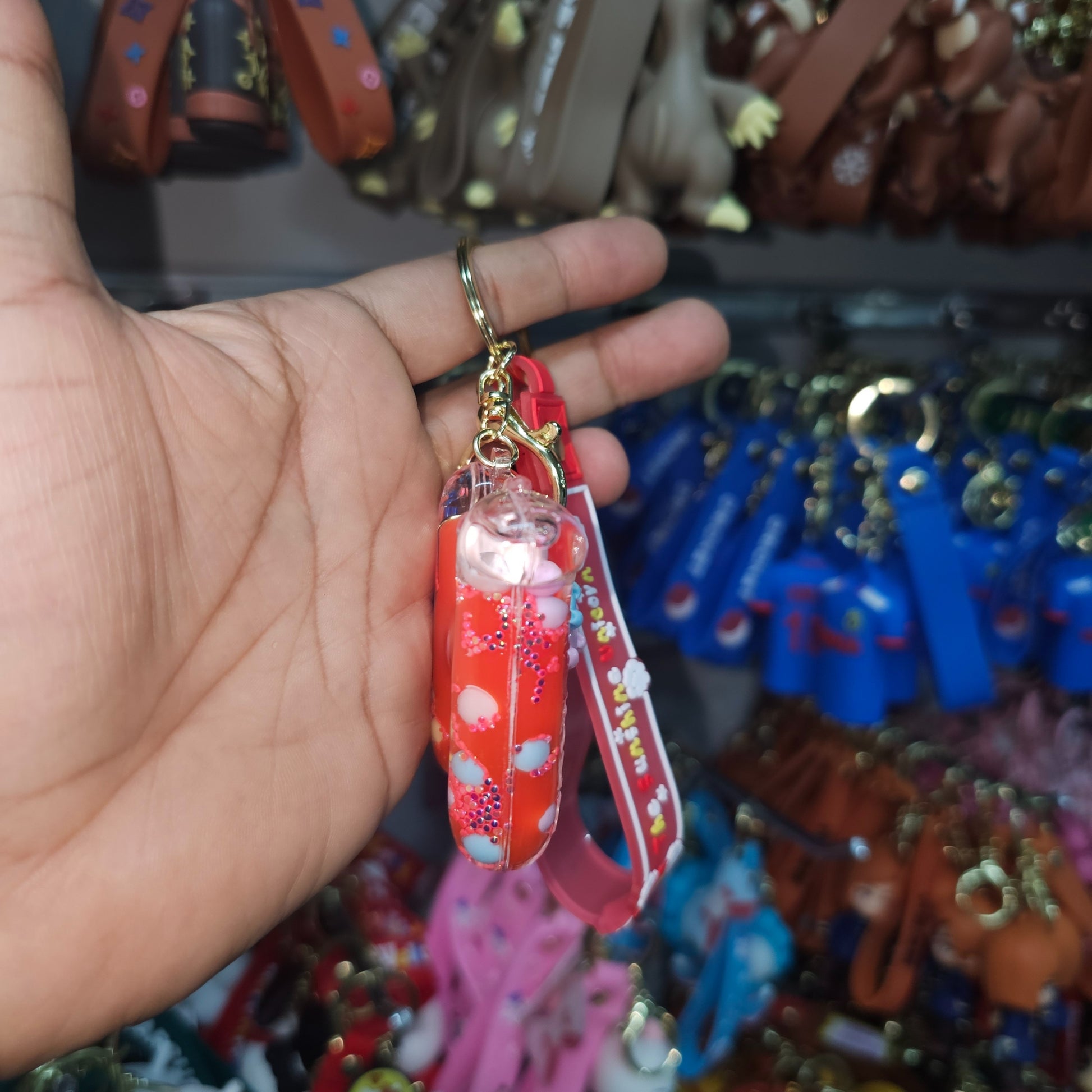 - PREMIUM MATERIAL: Crafted from durable PVC material with glitter-filled transparent casing, featuring a sturdy gold-tone metal keyring